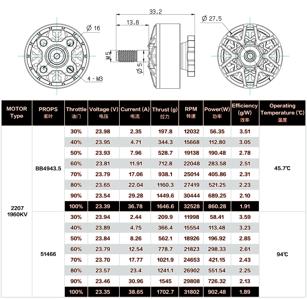 - Motor Dimensions: Φ27.2×33.3mm